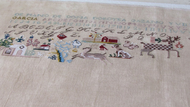 As part of Nicola's Scarlet Letter Challenge, I am stitching Dona Dorotea. It is a fun and easy stitch so far, but I am not looking forward to the satin stitches :-)
