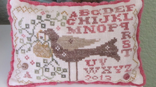 Has it ever happened to you that you stitch and stitch but don't really have much to show for? Well, that is my case. I have been stitching, but I only have one finish to show you ! Please see the picture below and let me know if you like it. It is My Handworke by Plum Street Samplers. Such a pleasure to stitch...